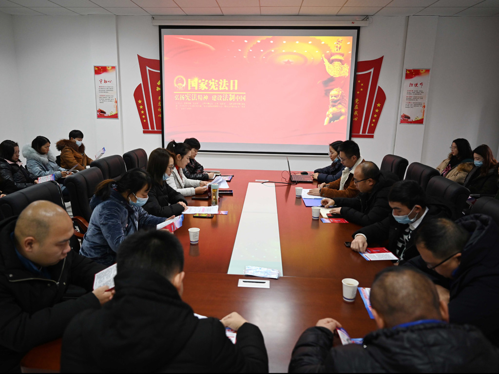 会议由公司合同法务部主持,会上各分子公司领导带领职工学习《习近平法治思想》《党的十九届五中全会精神》、《中华人民共和国宪法》等文件,集中观看我省宪法微视频优秀获奖作品,并组织职工进行《企业国有资产法》试题测验。会后,职工向市政家属院居民进行宪法宣传,普纪宪法知识,弘扬宪法精神。