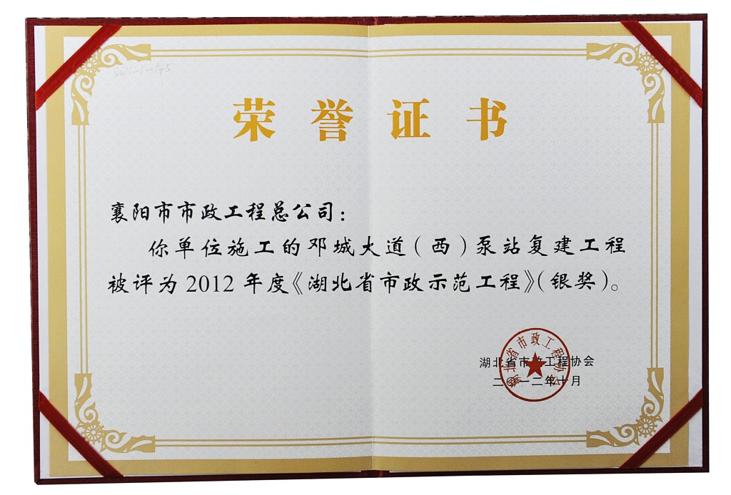 2012邓城大道AYX爱体育湖北省市政示范AYX爱体育银奖