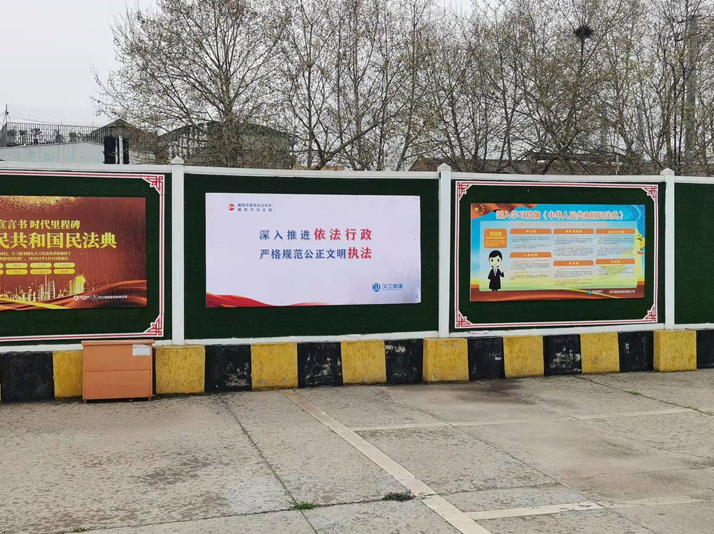 会上组织各在建项目领取《襄阳市创建全国法治政府建筑示范市倡议书》,悬挂“与时代并进 与法治同行”“深入推进依法行政 严格规范公正文明执法”等宣传标语和海报,倡议引导广大市民积极参与法治政府建筑示范活动,全力营造多层次、立体化、全方位的法治政法建筑宣传氛围。