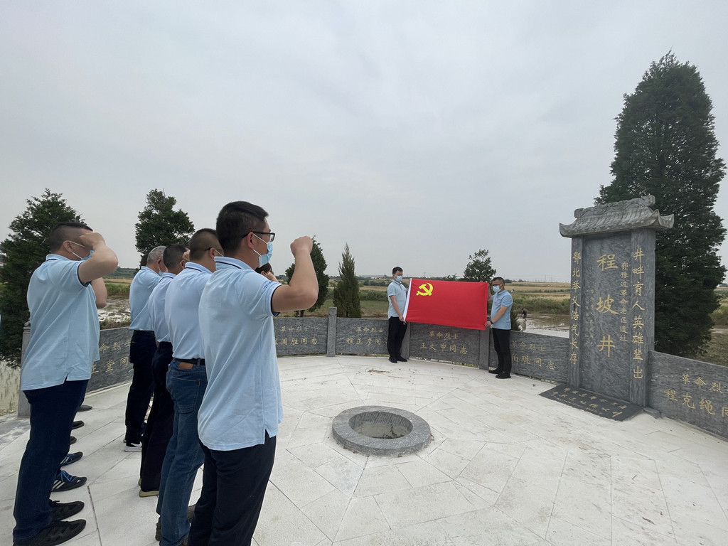 活动中全体党员在烈士雕像前敬献了花篮、集体默哀缅怀烈士。在程坡井前,党员同志们面向鲜红的党旗再次重温了入党誓词。来向东同志结合本次活动主题给大家上了一堂生动的党课。他讲到,程克绳将军的一生是敢于斗争、善于斗争、不懈斗争的一生、是为了人民、依靠人民、奉献人民的一生。这种红色家风是我们党永不褪色的“传家宝”。党员同志们深受鼓舞,纷纷表示,时刻牢记入党誓言,要继续发扬先辈们勇于担当,敢于创新,乐于奉献的精神,把红色信念化作奋发进取的力量源泉,立足本职,不忘初心,以自己的实际行动为公司高质量发展再做新贡献。
