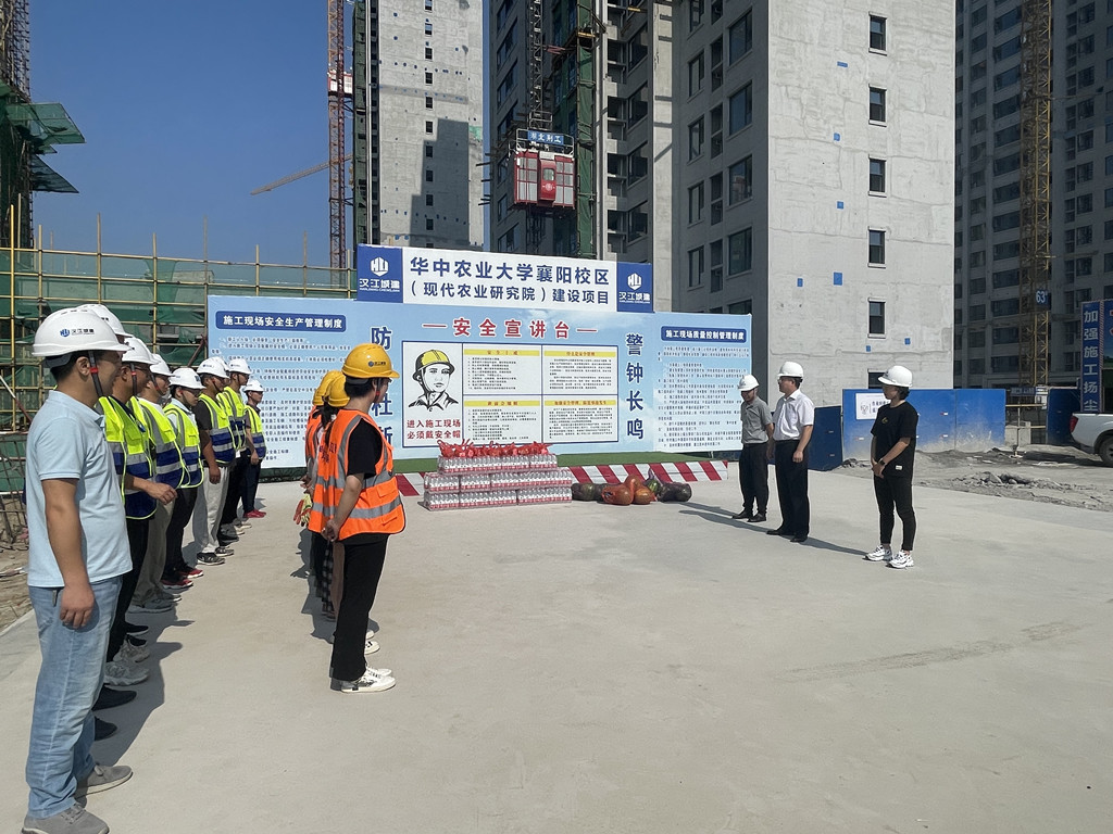 为切实做好夏季防暑降温工作,保障施工人员的身体健康,确保疫情防控和安全生产有序进行,6月16日上午,汉江One电竞集团总经理助理胡钧一行顶着酷暑来到华中农作物大学襄阳校区建筑项目一线施工现场,开展“情系一线送清凉 浓浓关爱暖匠心”夏季“送清凉”活动,为辛勤劳动在一线岗位上的工人送去了丝丝清凉;智投公司负责人、亚美体育官方app下载华农项目相关负责人陪同。