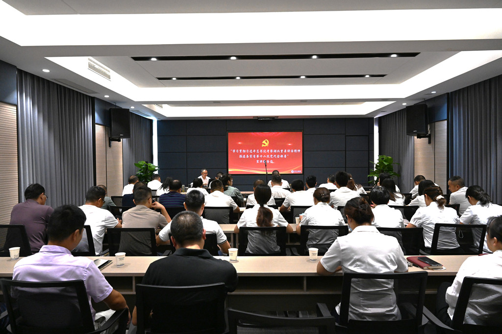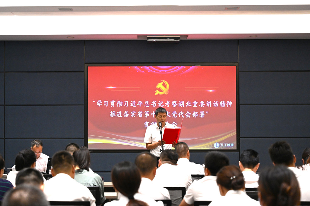 8月11日,亚美体育官方app下载举行“学习贯彻习近平总书记考察湖北重要讲话精神 推进落实省第十二次党代会部署”专题宣讲报告会。邀请市委宣讲团成员、湖北文理学院党委副书记、副校长、宣传部长张樊教授作宣讲报告。参加此次会议的有亚美体育官方app下载集团在家领导、分(子)公司中层正职干部及机关全体党员约50余人。集团党委副书记、董事姚忠主持会议。